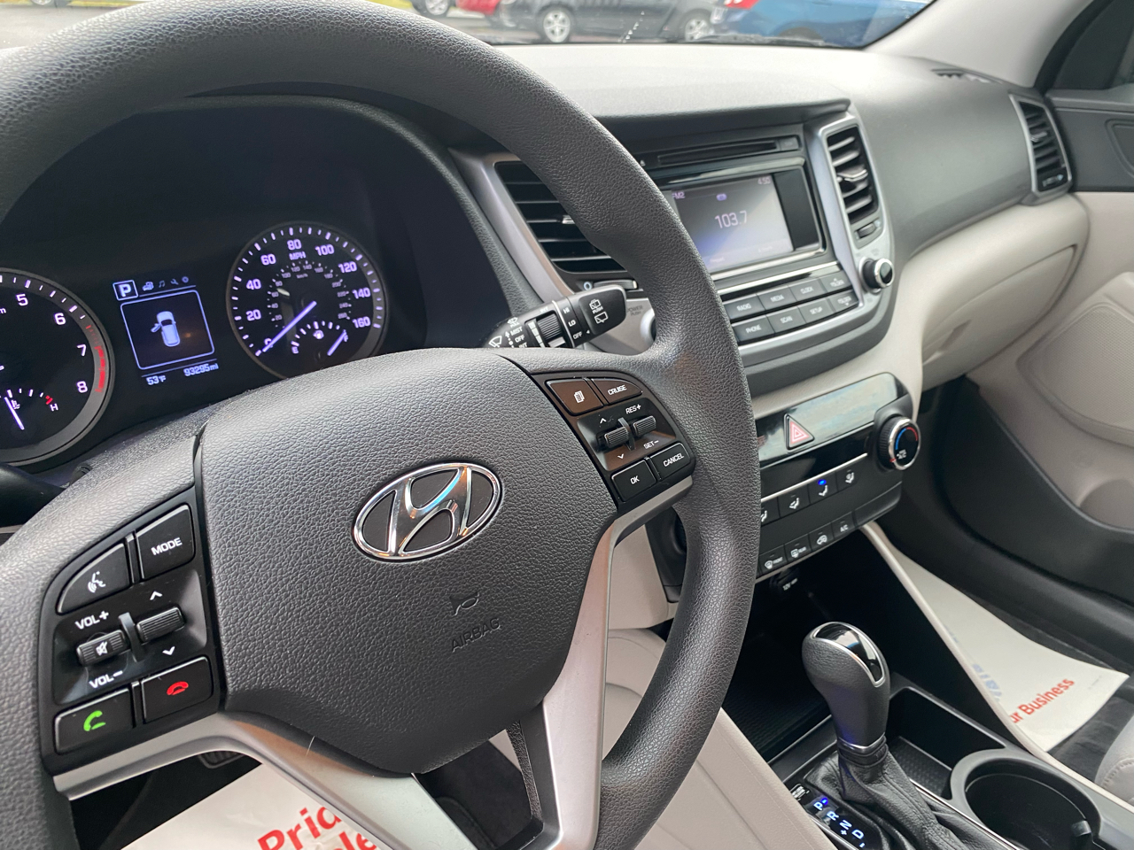 This Hyundai Tucson boasts a sharp exterior with body-colored bumpers, black bodyside cladding, and stylish 17" alloy wheels. The interior is just as impressive, with comfortable front bucket seats and a spacious rear bench for your passengers to relax in during long drives.