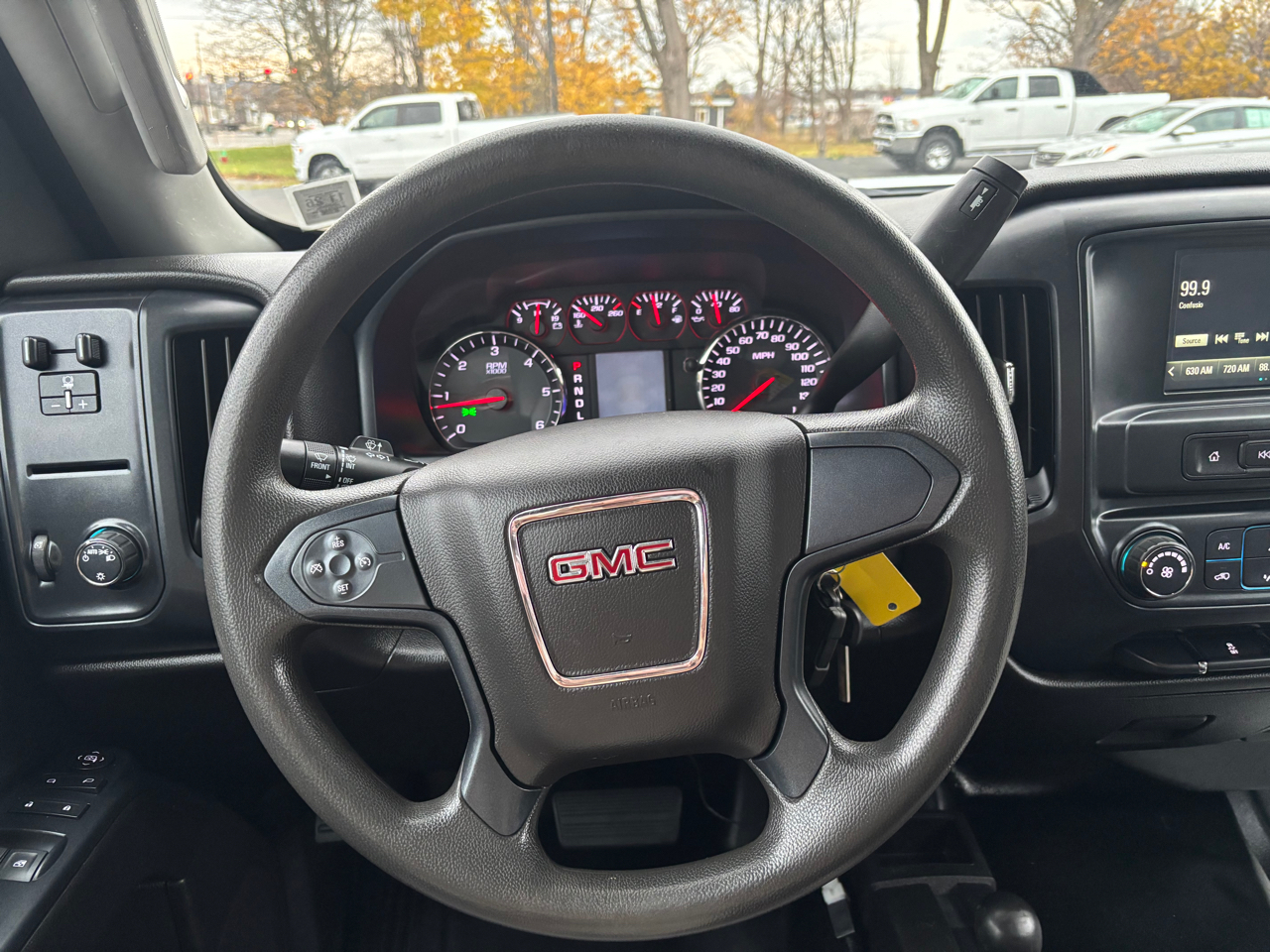 SIERRA CONVENIENCE PACKAGE includes (AQQ) Remote Keyless Entry, (A91) remote locking tailgate, (KI4) 110-volt AC power outlet, (UF2) LED cargo box lighting and (AKO) deep tinted glass; Double Cab and Regular Cab models includes (DPN) trailering mirrors. Regular Cab also includes (A31) power windows. BED LINER, SPRAY-ON Pickup box bed liner with GMC logo consisting of high pressure, chemically bonded, sprayed-on polyurea & polyurethane liner formulation. Liner is permanently bonded to the truck bed providing a water tight seal. The textured, non-skid surface is black in color and robotically applied. Spray-on liner covers entire bed interior surface below side rails, including tailgate, front box top rail, gage hole plugs and lower tie down loops, DEFOGGER, REAR-WINDOW ELECTRIC, MIRRORS, OUTSIDE HEATED POWER-ADJUSTABLE VERTICAL CAMPER UPPER GLASS, MANUAL-FOLDING AND EXTENDING, BLACK. Includes integrated turn signal indicators consisting of 51 square inch flat mirror surface positioned over a 24.5 square inch convex mirror surface with a common head and lower convex spotter glass (convex glass is not heated and not power adjustable) and addition of Auxiliary cargo lamp for backing up (helps to see trailer when backing up with a trailer) and amber auxiliary clearance lamp Includes (DD8) auto-dimming inside rearview mirror.), AUDIO SYSTEM, 7 DIAGONAL COLOR TOUCH SCREEN WITH GMC INFOTAINMENT SYSTEM, AM/FM with USB ports, auxiliary jack, Bluetooth® streaming audio for music and most phones, Pandora Internet radio and voice command pass-through to phone (STD), ENGINE, VORTEC 6.0L VARIABLE VALVE TIMING V8 SFI, E85-COMPATIBLE, FLEXFUEL capable of running on unleaded or up to 85% ethanol (360 hp [268.4 kW] @ 5400 rpm, 380 lb-ft of torque [515.0 N-m] @ 4200 rpm (STD), TRANSMISSION, 6-SPEED AUTOMATIC, HEAVY-DUTY, ELECTRONICALLY CONTROLLED with overdrive and tow/haul mode. Includes Cruise Grade Braking and Powertrain Grade Braking (STD).