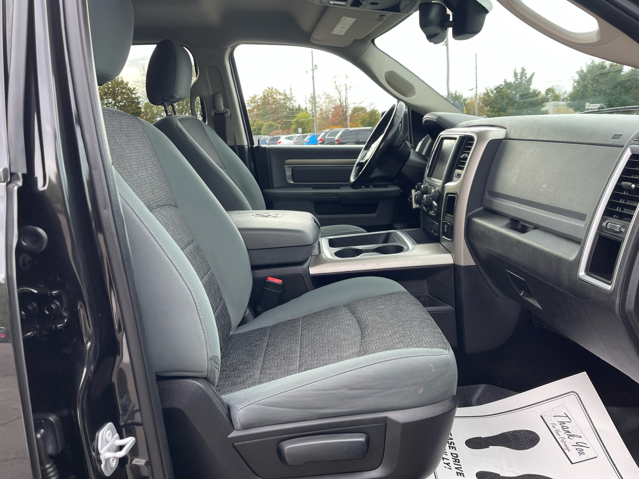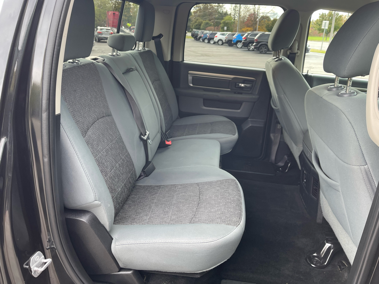 As you hit the road, you'll appreciate the Auto On/Off Reflector Halogen Headlamps and Fog Lamps for enhanced visibility. The Power Rear Window adds a touch of convenience, while the Deep Tinted Glass provides privacy and sun protection. With a sleek exterior featuring Clearcoat Paint and Chrome Details, this RAM 1500 is sure to turn heads wherever you go.