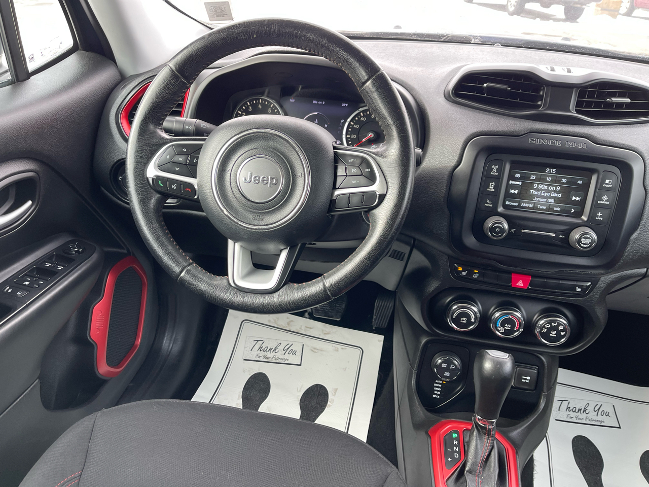 4x4, Back-Up Camera, Satellite Radio, iPod/MP3 Input, Bluetooth®, Aluminum Wheels Rear Spoiler, MP3 Player, Privacy Glass, Child Safety Locks. Serviced here Jeep Trailhawk with Jetset Blue exterior and Black interior features a 4 Cylinder Engine with 180 HP at 6400 RPM*.