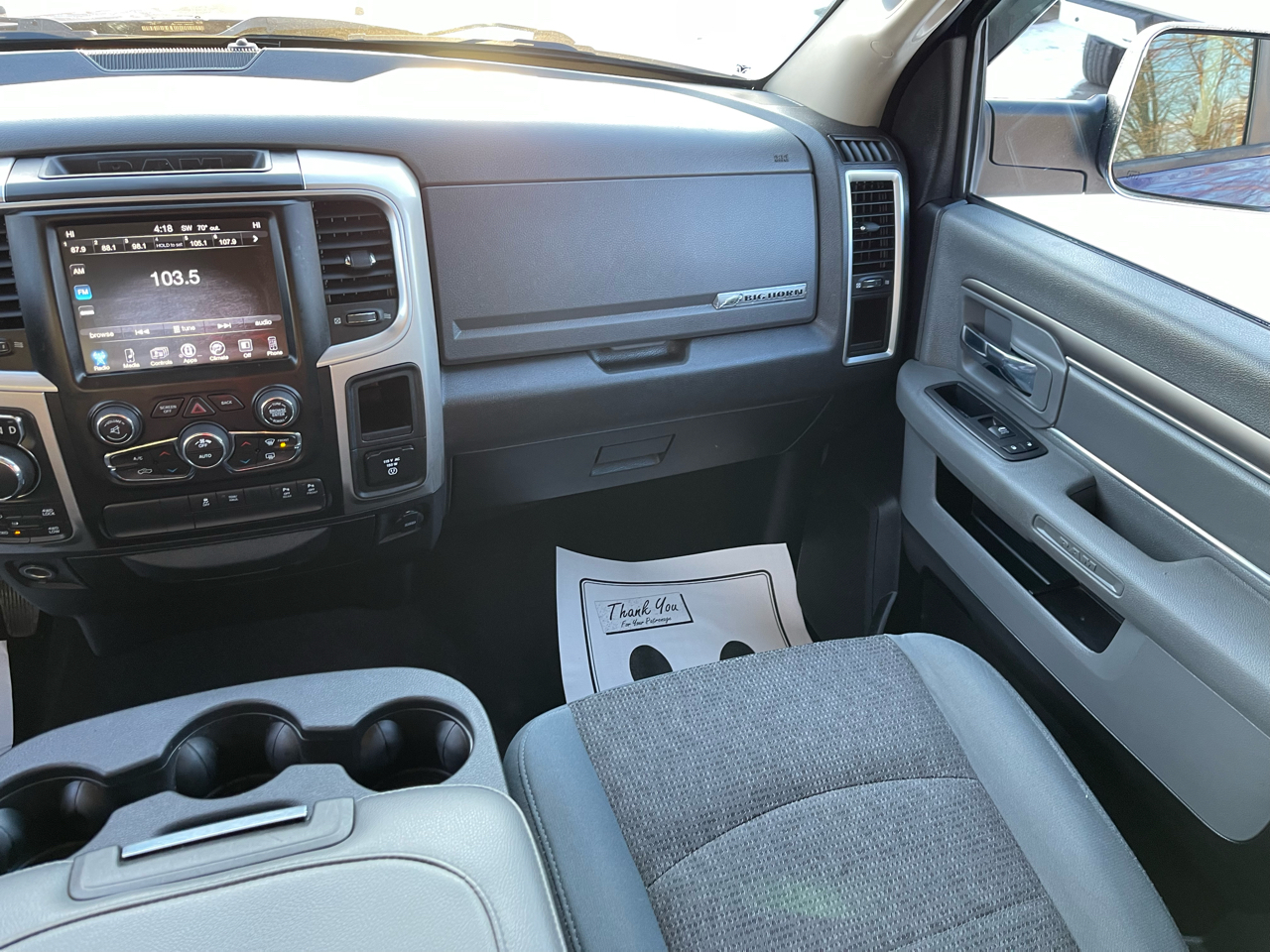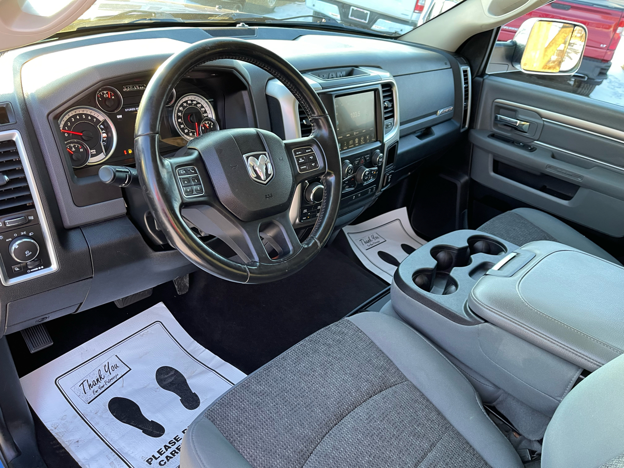 QUICK ORDER PACKAGE 26S BIG HORN Engine: 5.7L V8 HEMI MDS VVT, Transmission: 8-Speed Automatic (8HP70), Rear View Auto Dim Mirror, Leather Wrapped Steering Wheel, Rear Dome w/On/Off Switch Lamp, Underhood Lamp, LED Bed Lighting, Glove Box Lamp, Bright/Bright Billets Grille, Auto Dim Exterior Mirrors, Big Horn Regional Package, Big Horn Badge, Security Alarm, Power Heated Fold-Away Mirrors, Electroluminescent Instrument Cluster, Overhead Console w/Garage Door Opener, Universal Garage Door Opener, Remote Start System, Full Size Temporary Use Spare Tire, SIRIUSXM Satellite Radio, No satellite coverage in Hawaii or Alaska, (Reg, Required), For Details Visit DriveUconnect.com, Uconnect Access, (Registration Required), 8.4 Touchscreen Display, Nav-Capable! See Dealer, ENGINE: 5.7L V8 HEMI MDS VVT Electronically Controlled Throttle, Heavy Duty Engine Cooling, Next Generation Engine Controller, Engine Oil Heat Exchanger, Hemi Badge, Heavy Duty Transmission Oil Cooler, TRANSMISSION: 8-SPEED AUTOMATIC (8HP70) 17 Aluminum Spare Wheel.