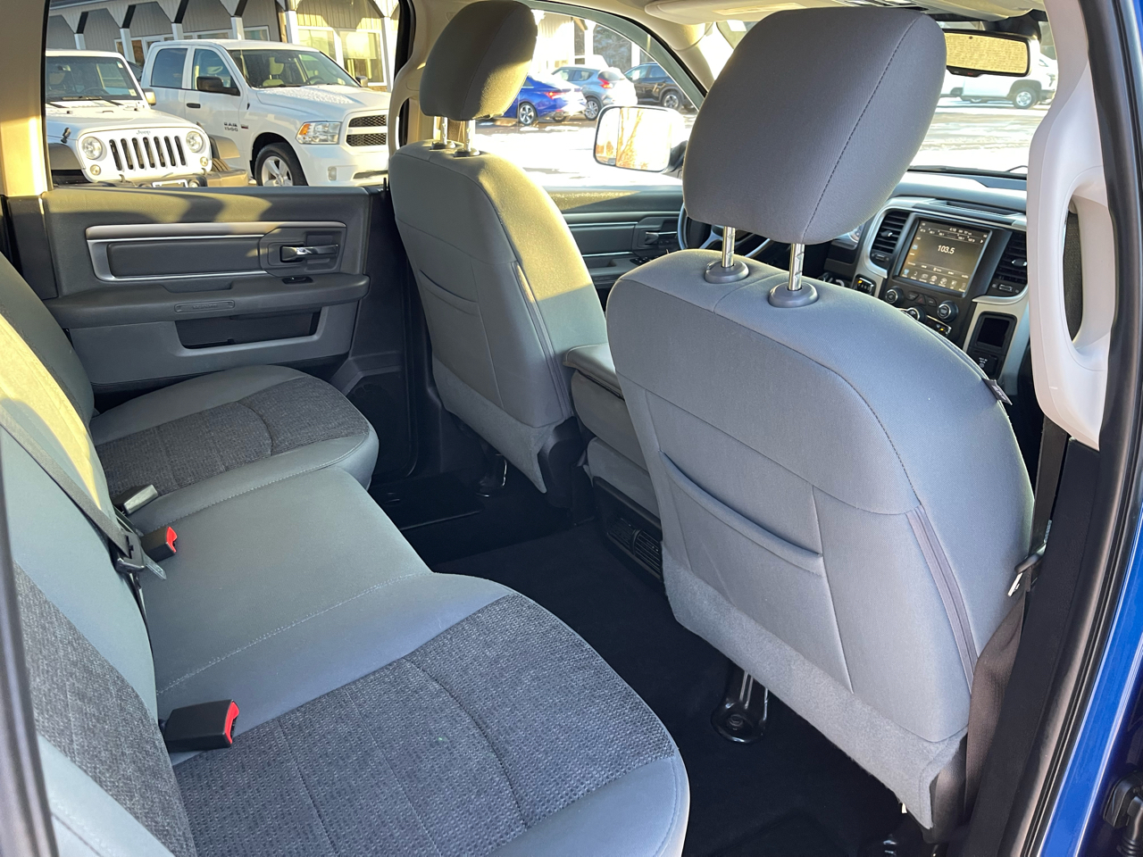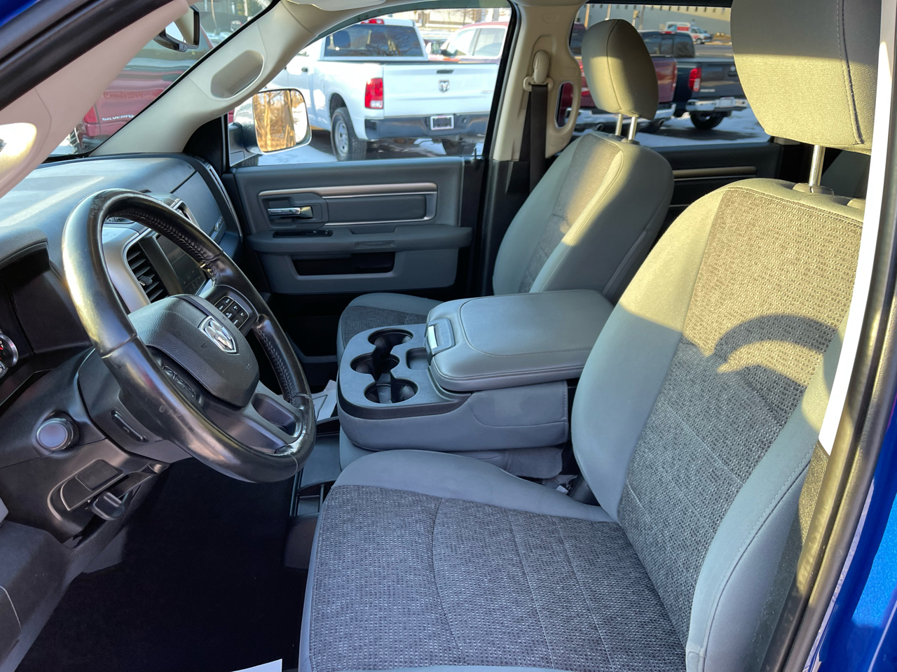 4x4, Back-Up Camera, iPod/MP3 Input, Trailer Hitch, Chrome Wheels. MP3 Player, Privacy Glass, Keyless Entry, Child Safety Locks. Ram Big Horn with Blue Streak Pearlcoat exterior and Diesel Gray/Black interior features a 8 Cylinder Engine with 305 HP at 6400 RPM*.