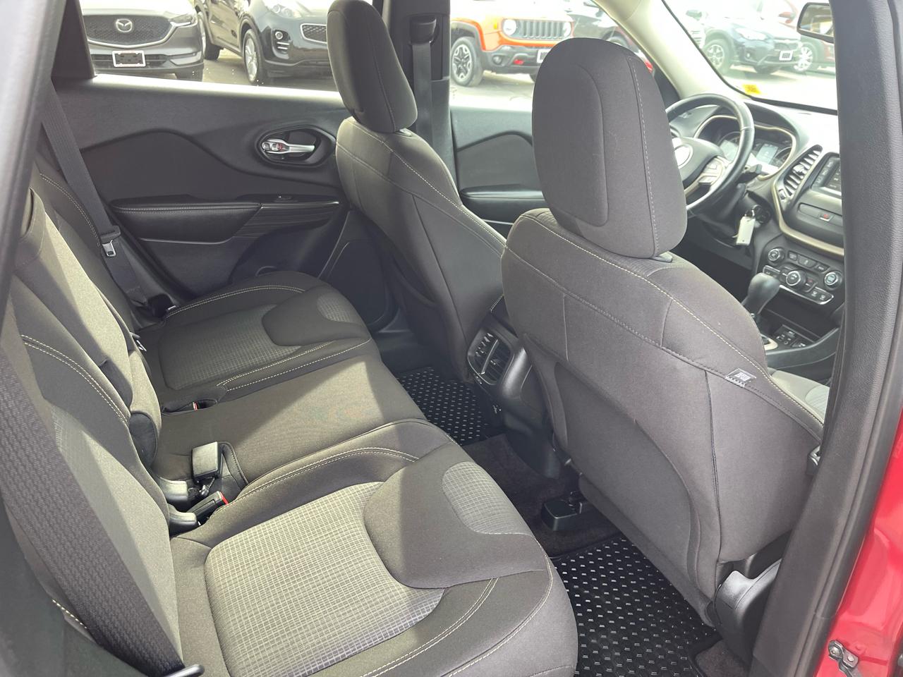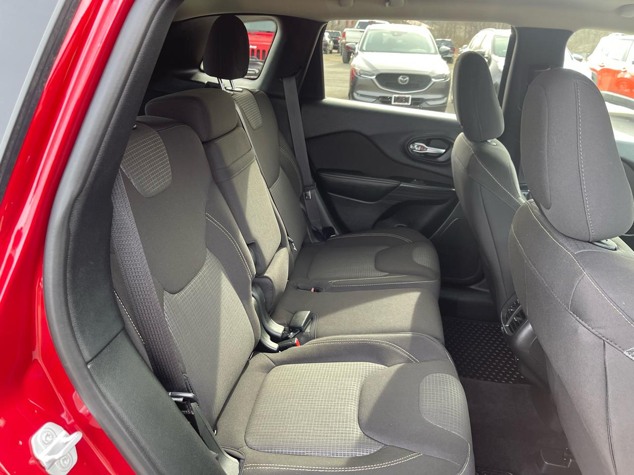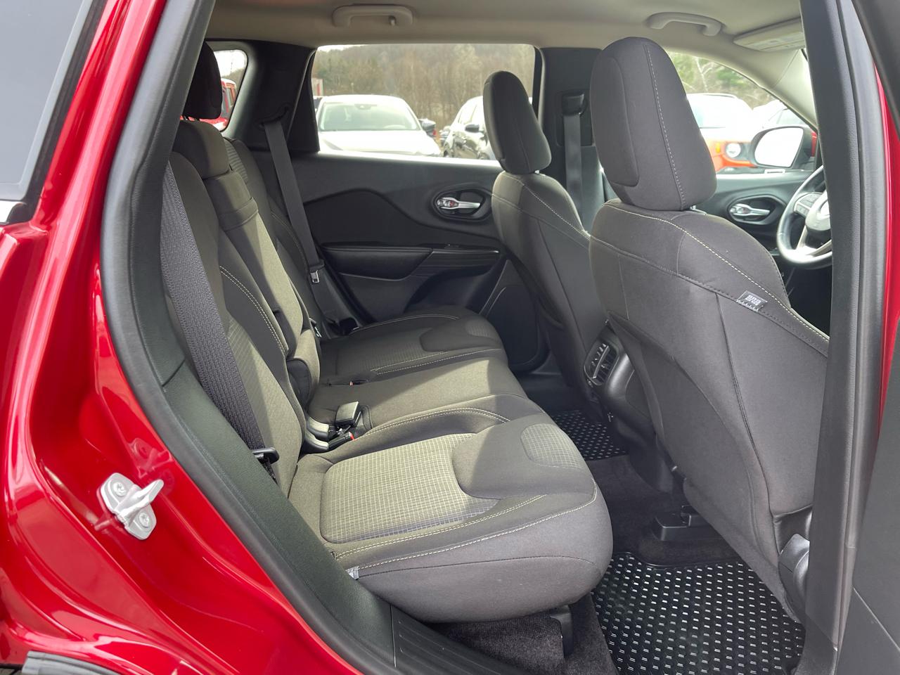 Edmunds.com explains The Cherokee features one of the better backseats in the compact crossover class. Not only does it recline, but it also provides for fore-and-aft adjustment, and the high-mounted bench supports adults thighs without pushing their heads into the rafters..