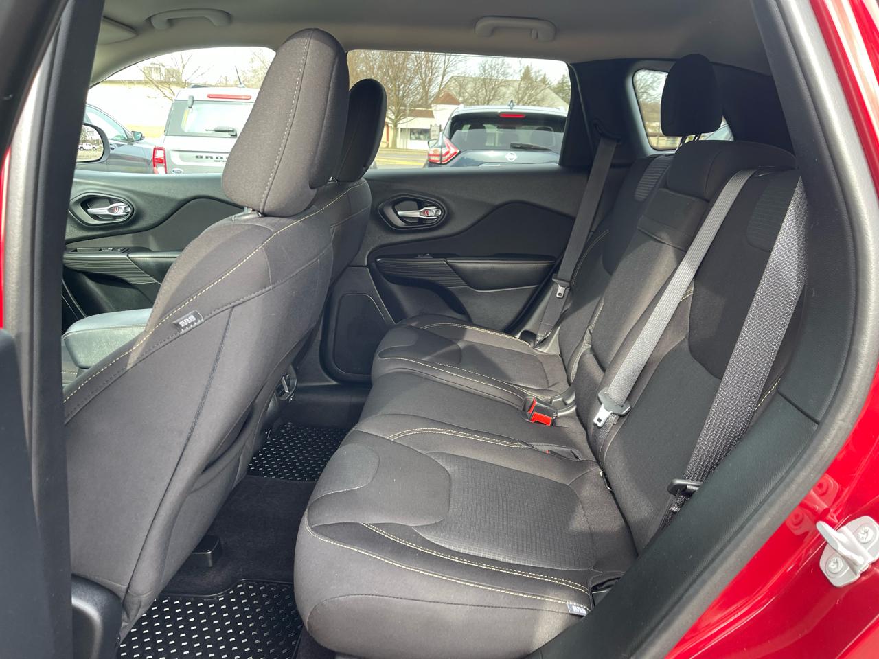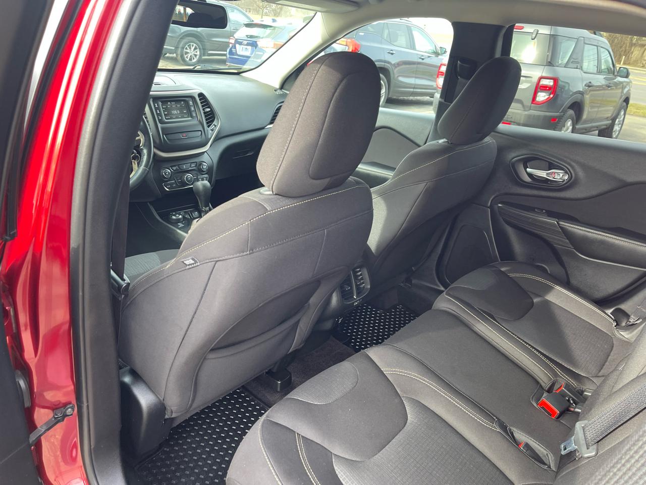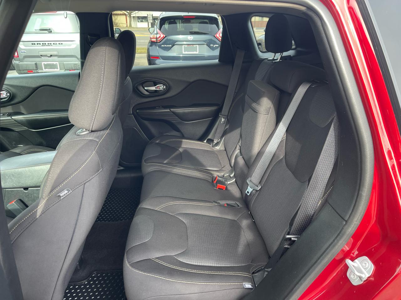 Edmunds.com explains The Cherokee features one of the better backseats in the compact crossover class. Not only does it recline, but it also provides for fore-and-aft adjustment, and the high-mounted bench supports adults thighs without pushing their heads into the rafters..